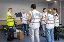 Professional emergency services may, at times, be limited in their response capacity and are often forced to focus their efforts on providing only the most essential assistance. Ready2Help is especially beneficial when a large number of people are quickly needed to provide extra support. This includes physical assistance (e.g. filling sandbags, carrying goods), sheltering groups of people, relieving healthcare personnel or providing assistance by making resources available (e.g. places to sleep or means of transport). The Netherlands Red Cross coordinates the deployment of Ready2Heleprs alongside the professional emergency services. In principle, Ready2help is a support service which is only activated in addition to the deployment of the Netherlands Red Cross's formal volunteers. However, it may happen that only Ready2Helpers are deployed, in which case a trained team leader from the Netherlands Red Cross will always be present for guidance and coordination.